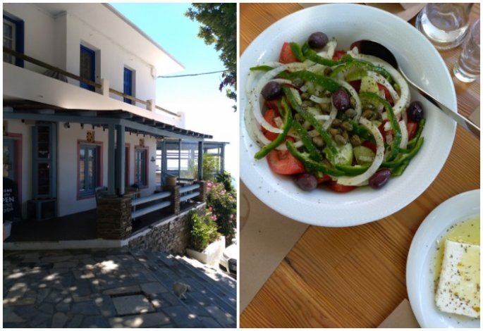 Η ταβέρνα στην είσοδο του oμώνυμου χωριού στα νότια της Τήνου έχει δροσιά, φοβερή θέα και νόστιμο φαγητό